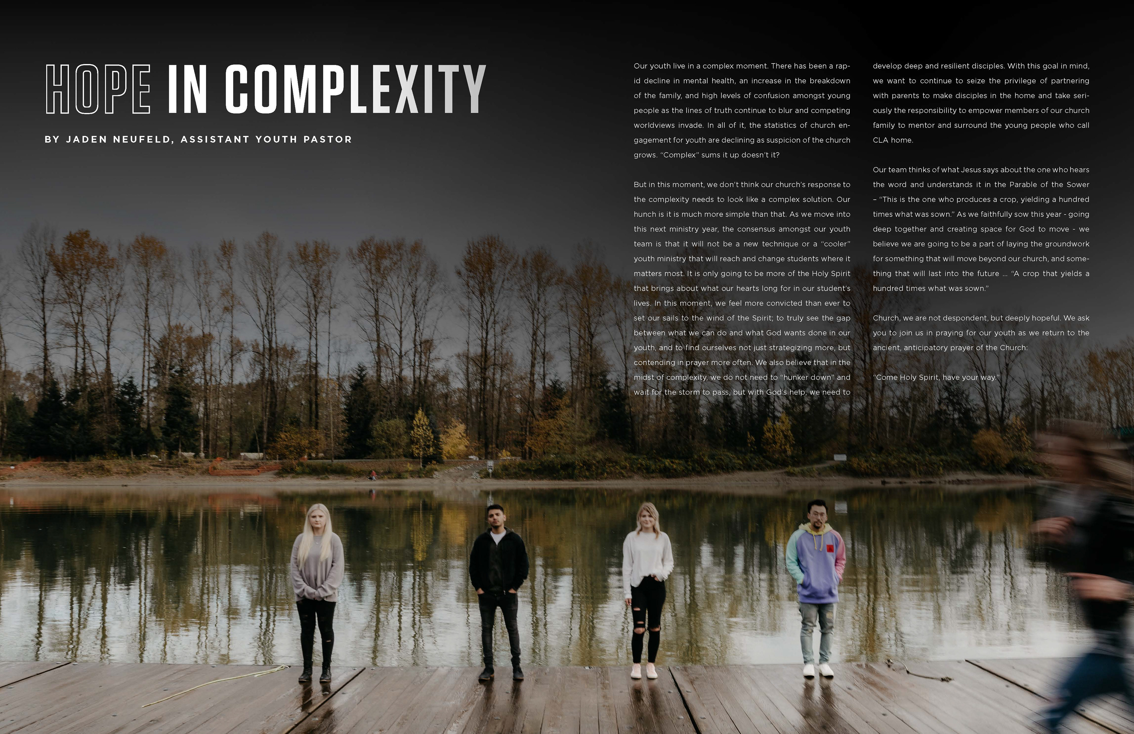 Here is a collection of some of my favourite spreads from this project. With content of encouraging stories, interviews, and announcements for those in and out of the Christian Life Assembly (CLA) community that strive to bring the word of God to others daily. Having Powerful imagery and compelling written content to complement it, this magazine was a project I was happy to take part in.